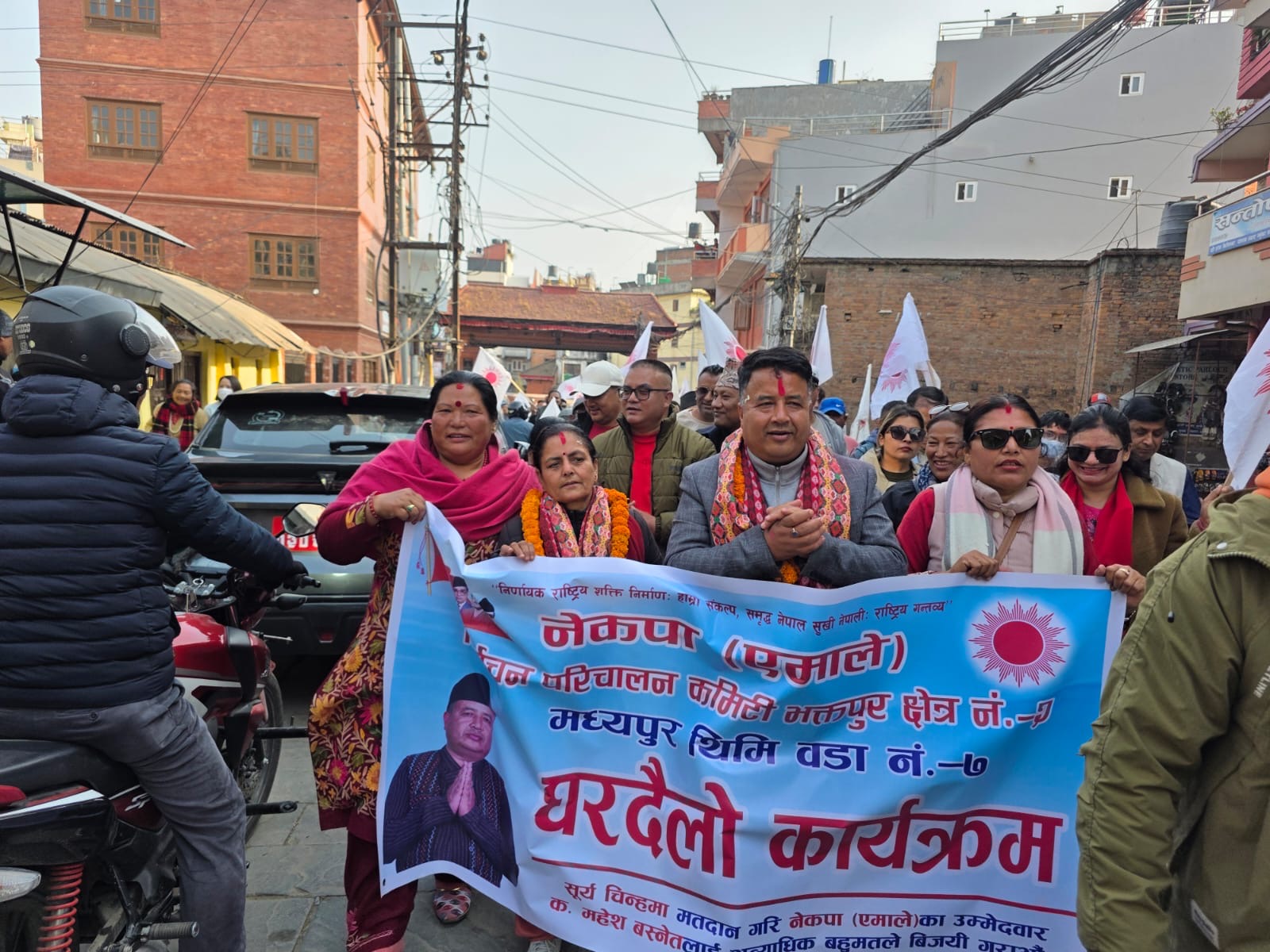 भक्तपुर, ६ फागुन । साँझ ढल्किसकेको थियो । घरघर र सडकमा बत्तिको उज्यालो देखिन थालेको थियो तर सूर्यविनायक नगरपालिका वडा नं. ३ सलमपाखाका जेष्ठ नागरिक, महिला र जेन्जी युवाहरुको आफ्नो ठाउँमा विकासको मूल फुटाउने, निडर,