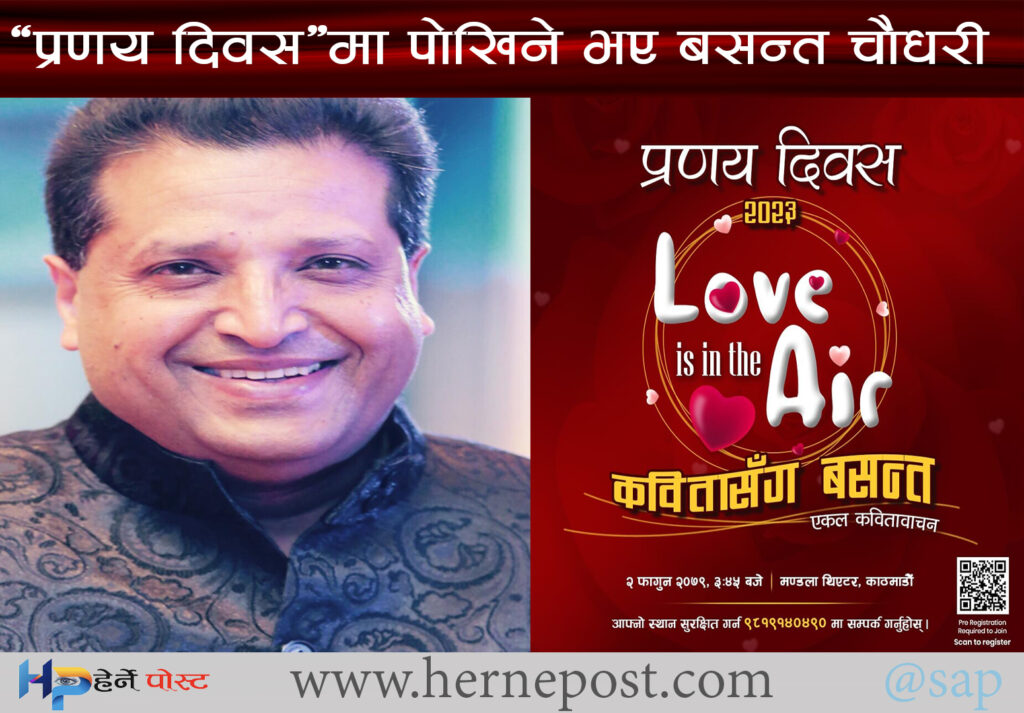 यो वर्षको ‘ भ्यालेन्टाइन डे’(प्रणय दिवस)को दिन प्रेमिल कवि तथा गीतकारको छवि बनाएका बसन्त चौधरीको एकल कविता वाचन कार्यक्रम आयोजना हुने भएको छ ।
