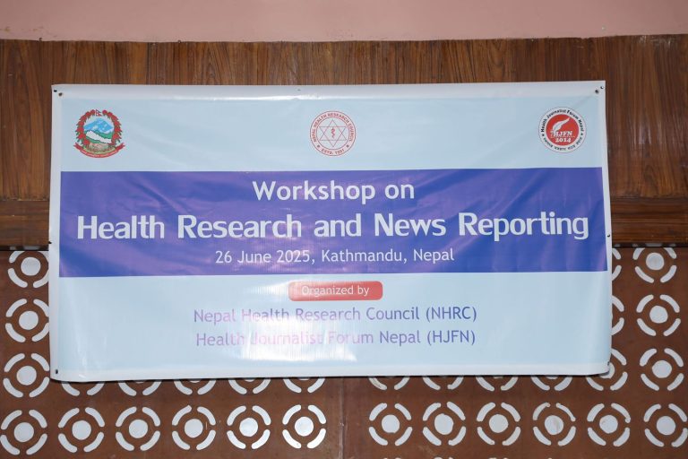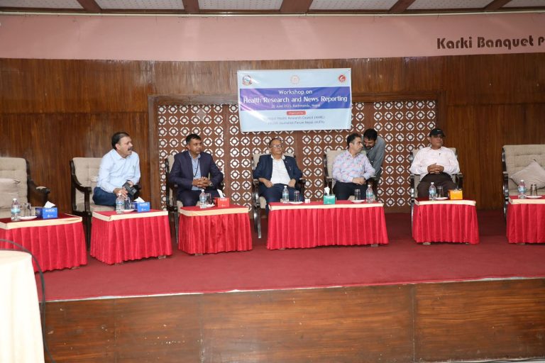 काठमाडौं, ‘स्वास्थ्य अनुसन्धान र समाचार रिपोर्टिङ’ विषयक एक दिने कार्यशाला सम्पन्न भएको छ । स्वास्थ्य पत्रकारहरुको क्षमता अभिवृद्धिको लागि नेपाल स्वास्थ्य अनुसन्धान परिषद् ९एनएचआरसी० र स्वास्थ्य पत्रकार मञ्च, नेपाल ९एचजेएफएन०को संयुक्त आयोजनामा बिहीबार काठमाडौंमा कार्यशाला तथा तालिम आयोजना गरिएको हो ।