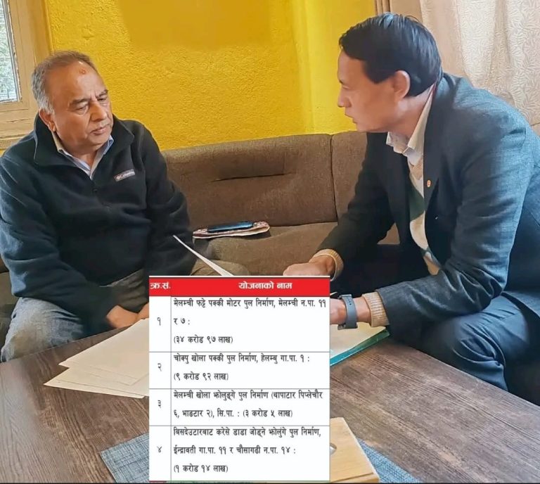 सबैभन्दा ठूलो परियोजनाको रूपमा मेलम्ची फट्टे–पक्की मोटर पुल निर्माण अघि बढेको छ। करिब ३४ करोड ९७ लाख रुपैयाँ लागतमा बन्ने यो पुल सम्पन्न भएपछि मेलम्ची आसपासका बस्तीहरू मात्र होइन, समग्र सिन्धुपाल्चोकको यातायात सञ्जाल थप सुदृढ हुने विश्वास लिइएको छ।