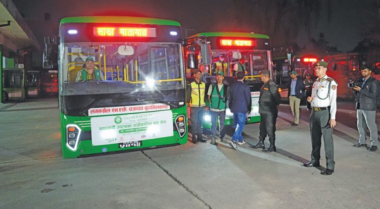 काठमाडौँ । काठमाडौँ महानगरपालिकाले नयाँ वर्षको अवसर पारेर उपत्यकामा रात्रिकालीन बस सेवा पुनः सञ्चालनमा ल्याएको छ। यसअघि पटक–पटक प्रयास भए पनि निरन्तरता पाउन नसकेको यो सेवा मंगलबार राति ८ बजेदेखि सुरु भएको हो।
