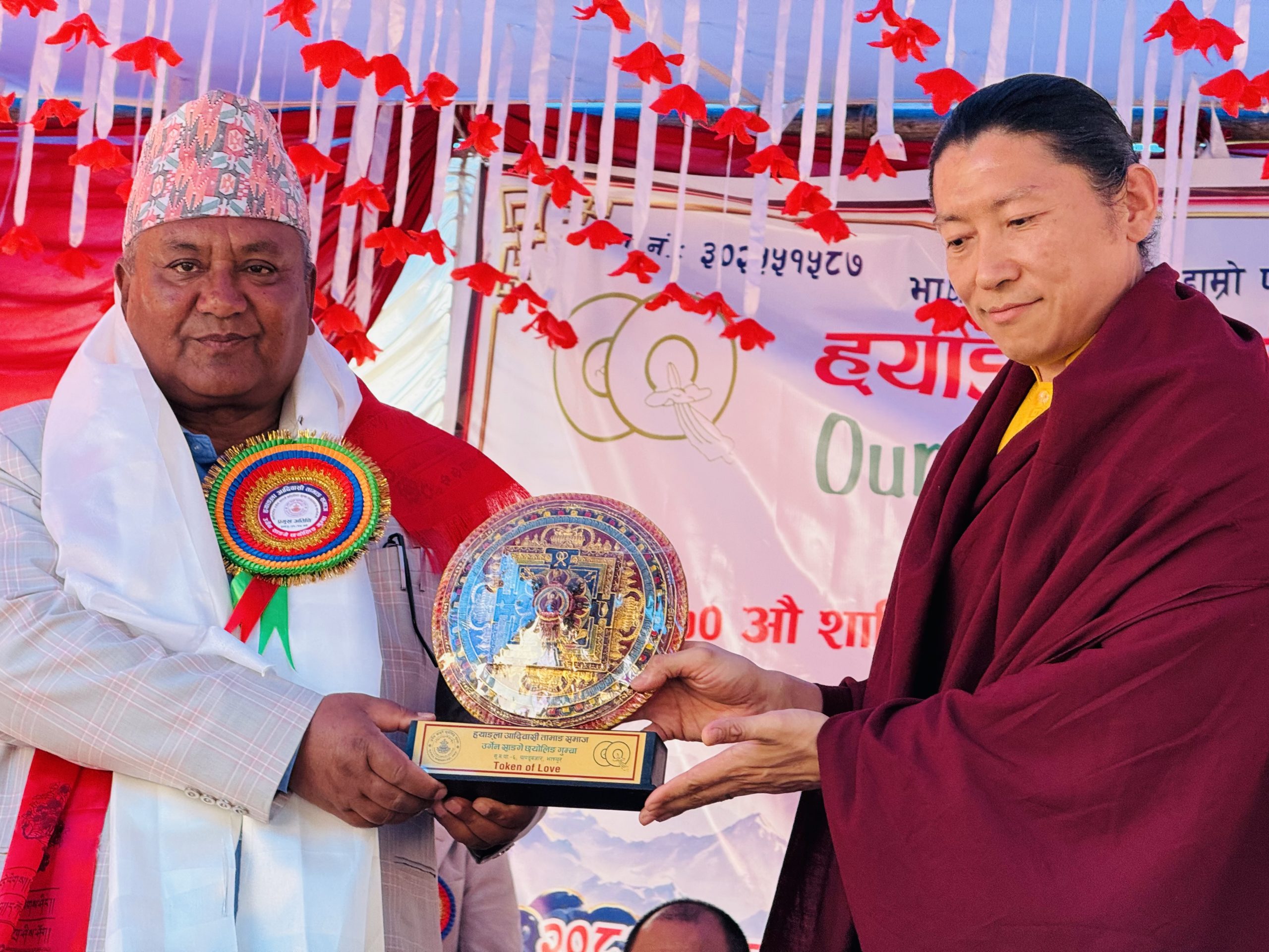 कार्यक्रमका प्रमुख अतिथि सुर्यविनायक नगरपालिका का प्रमुख बासुदेव थापाले कार्यक्रमलाई सम्बोधन गर्दै विभिन्न जातजाति धर्म, सस्कृतिको जगेर्ना गर्नु आफ्नो मुल मन्त्र रहेको बताउनुभयो । सबै धर्मलाई सम्मान दृष्टिकोण ले हेर्नुनै महत्त्वपूर्ण रहेको उल्लेख गर्नुभयो ‘उर्गेन साङ्गे छ्योलिङ गुम्बा’ निर्माण का लागि सुर्यविनायक नगरपालिकाका प्रमुख वासुदेव थापाले एक करोड ५० लाख सहयोग दिनुभएको बताउनुभयो ।