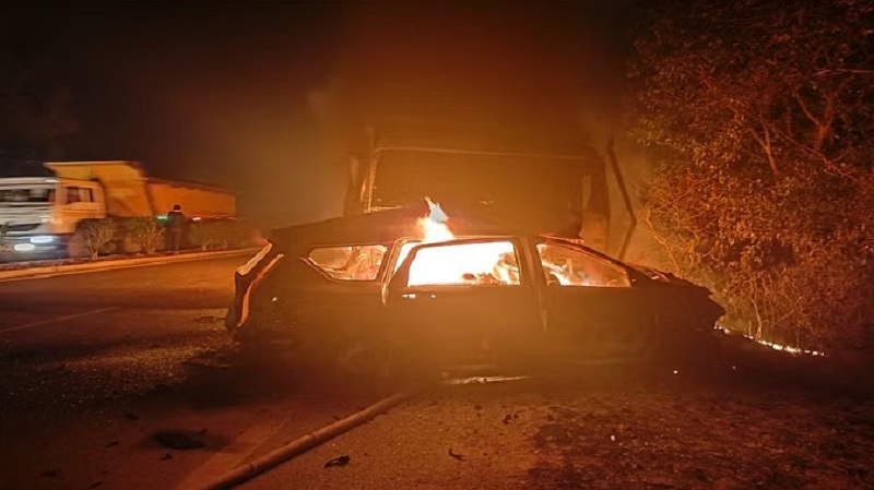 ट्रकमा ठोक्किएपछि कारमा आगो लागेको थियो। कार सेन्ट्रल लक भएका कारण भित्र रहेका यात्रु बाहिर निस्किन पाएनन्।
