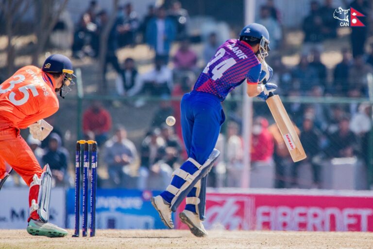 काठमाडौँ । आईसीसी क्रिकेट विश्व कप लिग-२ प्रतियोगिताको आइतबारको खेलमा नेपालले नेदरल्यान्ड्सलाई जितका लागि एक सय ७३ रनको सामान्य लक्ष्य दिएको छ ।