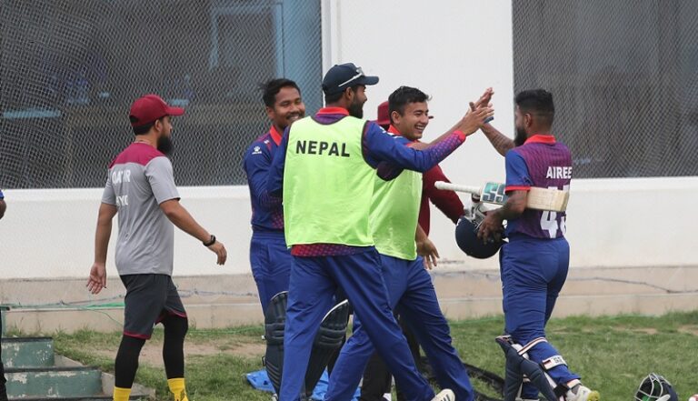 दिपेन्द्रले २० औं ओभरमा छ वटा छक्का प्रहार गर्दै २१ बलमा ६४ रन बनाए । यस्तै आशिफ शेषले ५२ र कुशल मल्लले ३५ रनको योगदान गरे । ओमानका हिमान्सु राथोड र मुसवार साहले सामान तीन विकेट लिए ।