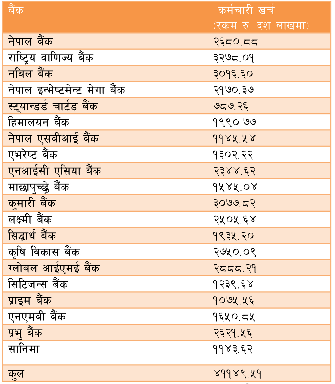 कुन बैंकको कर्मचारी खर्च कति ?