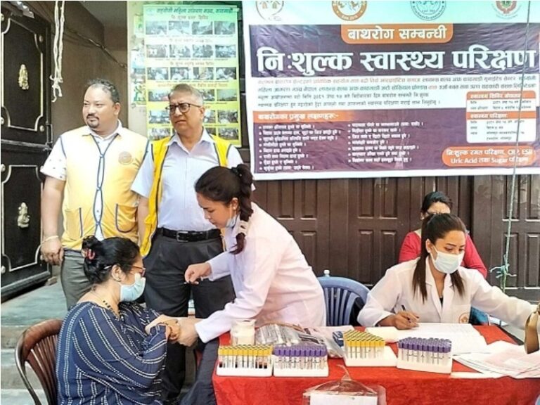 वरिष्ठ बाथ रोग विशेषज्ञ डा श्वेता नकर्मीद्वारा स्वास्थ्य परीक्षण गरिएको उक्त शिविरमा १४५ जनाको इएसआर, सीआरपी, युरिक एसिड र सुगर परिक्षण गरिएको थियो ।परीक्षणपश्चात् बिरामीहरुलाई आवश्यकता अनुसार औषधि वितरण गरिएको थियो।