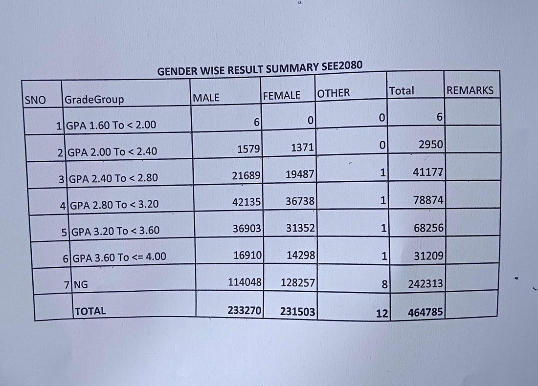 नतिजाअनुसार, एक वा दुई विषयमा ‘ननग्रेड’ ल्याएका एक लाख १५ हजार ८३४ जनाले आउँदो साउन १८ र १९ गते मौका परीक्षा दिन पाउनेछन् ।